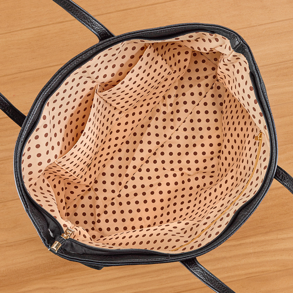 This tote holds everything you need to tackle your day. Use the exterior zip pockets for easy access to mints and your lipstick. Inner pockets give you space to stay organized on the go.
