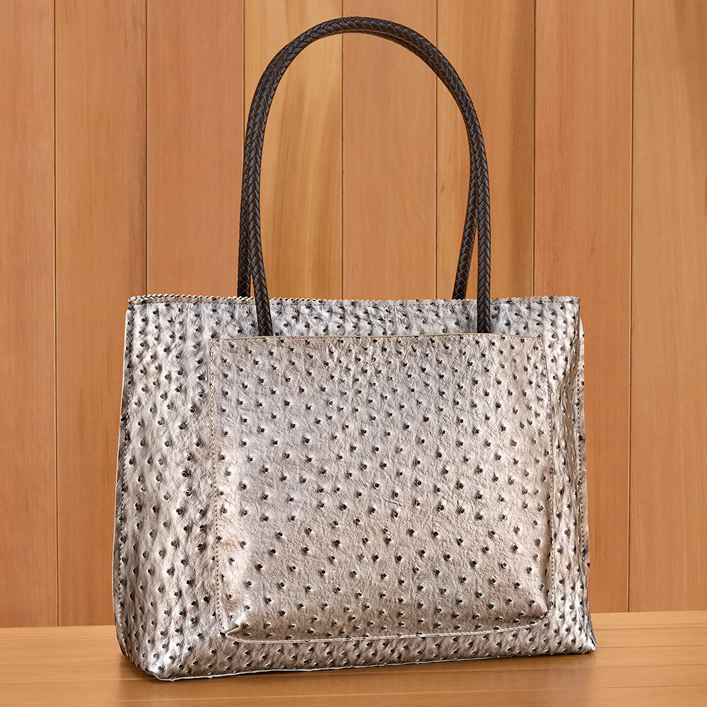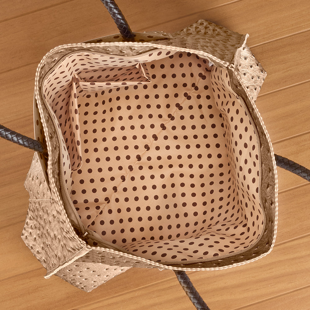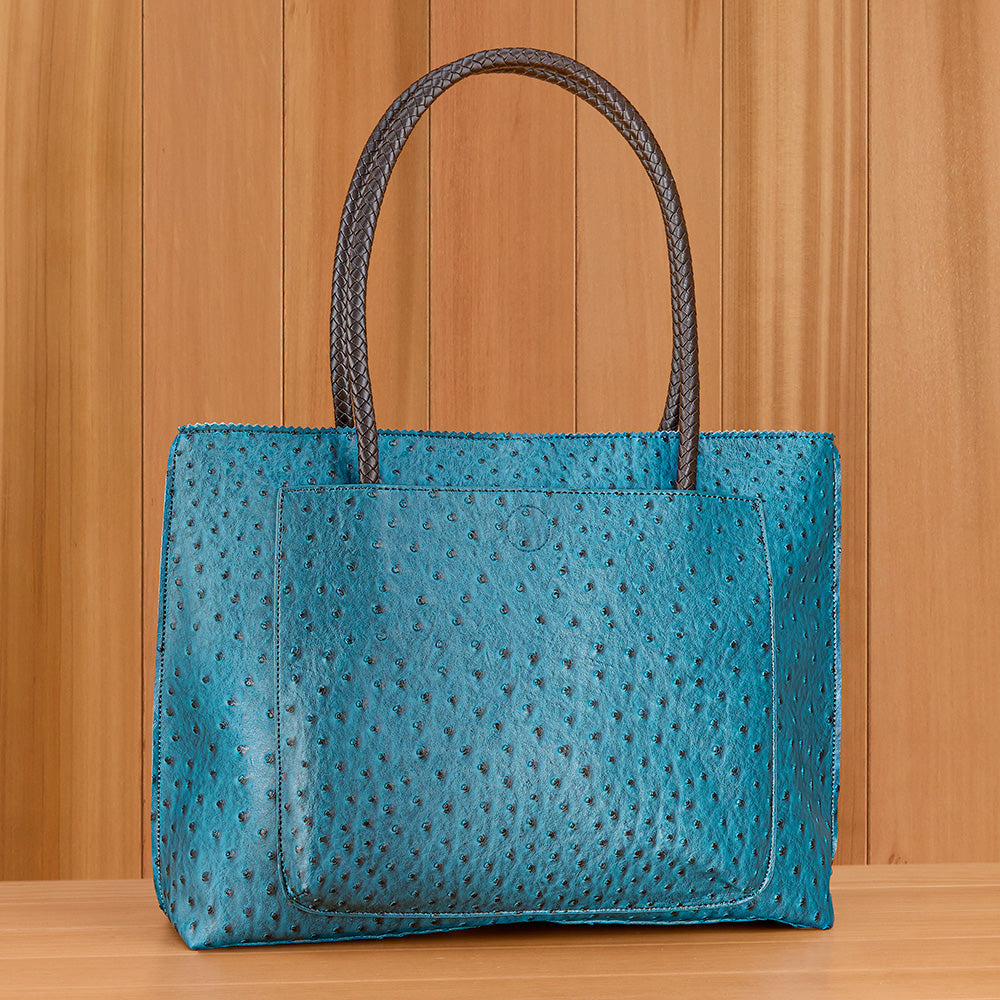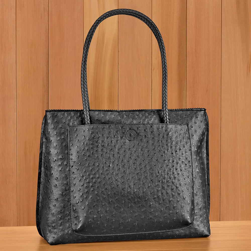 22 Tote Vegan Ostrich Leather Zip Tote Handbag with Pockets