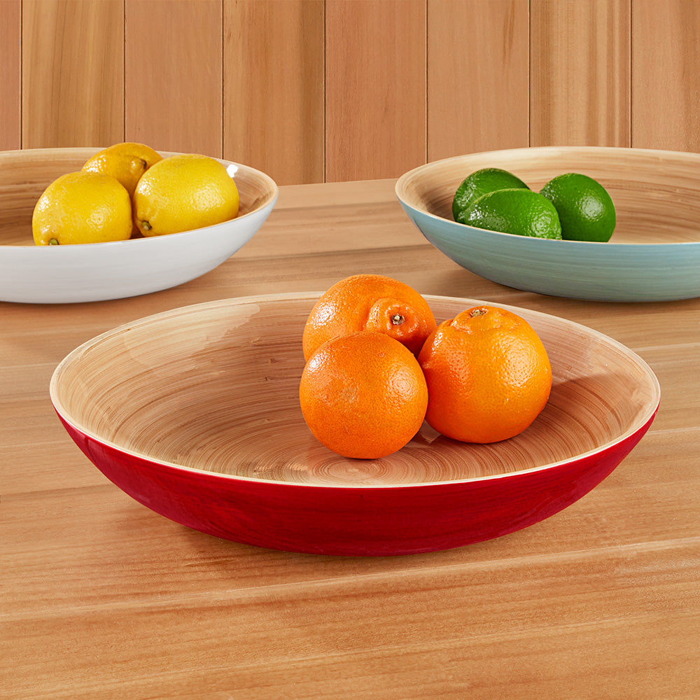 Generously sized for serving and display, this Bamboo Bowl combines modern design with old world craftsmanship. It's also excellent for salads, pasta, popcorn and more. Makes a great gift!