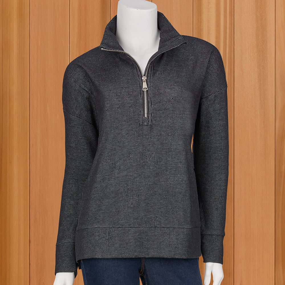 Cute and casual with a zip neck and drop shoulders, this pullover is perfect for beach days, errands and lunches out. Wear it with leggings or a skort for a wide array of looks.