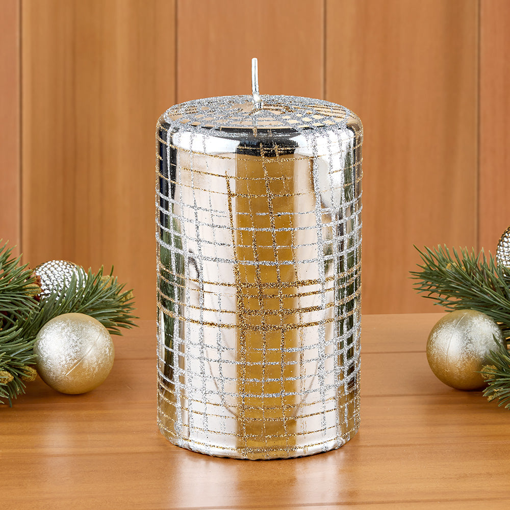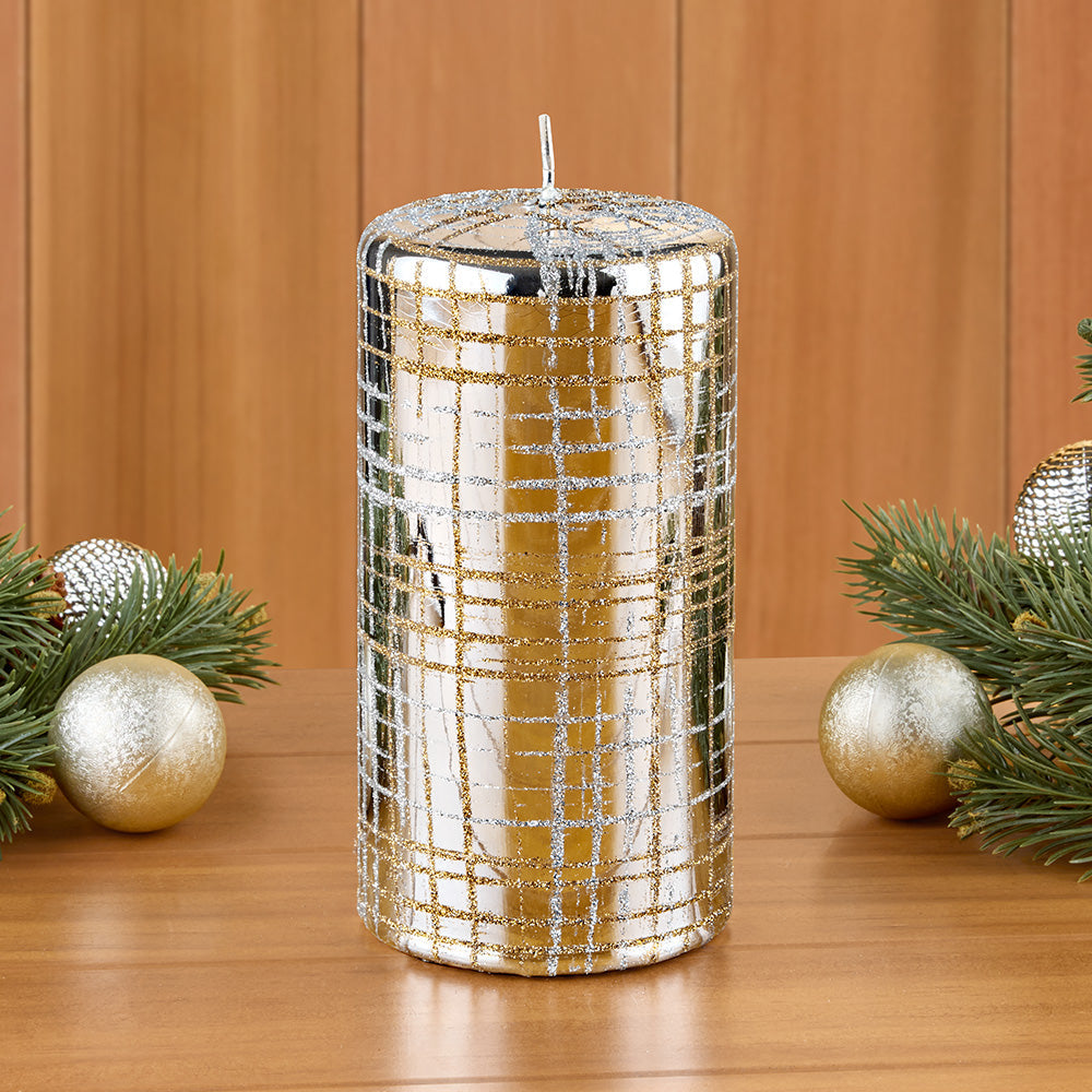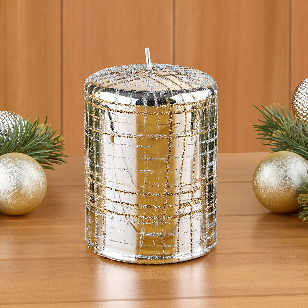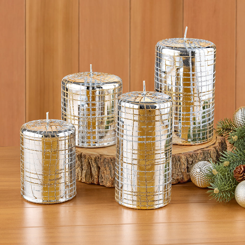 Add winter magic to mantles and tabletops. Mix these metallic candles with other styles for a glam seasonal display.