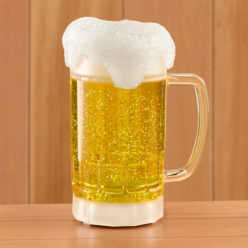 Raise spirits with the Swirling Glitter Beer Mug Lantern with a realistic head of foam that captures the perfect pint. Its shimmering glitter adds a festive glow, so every moment feels like a celebration. Cheers!