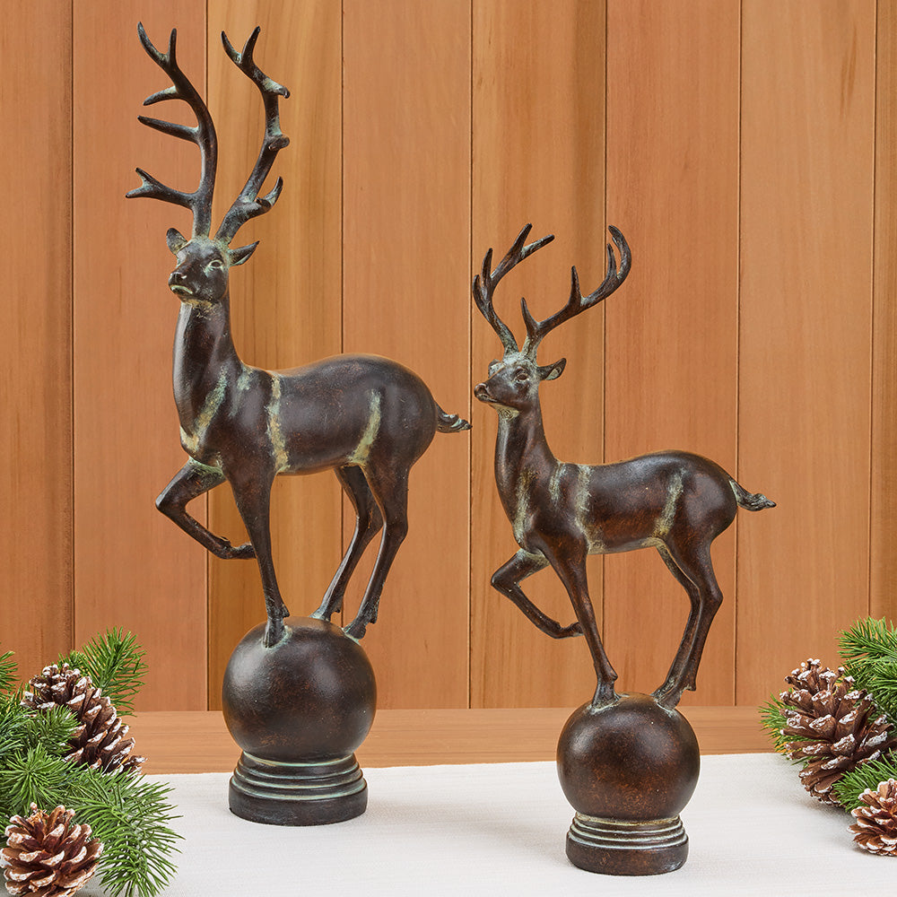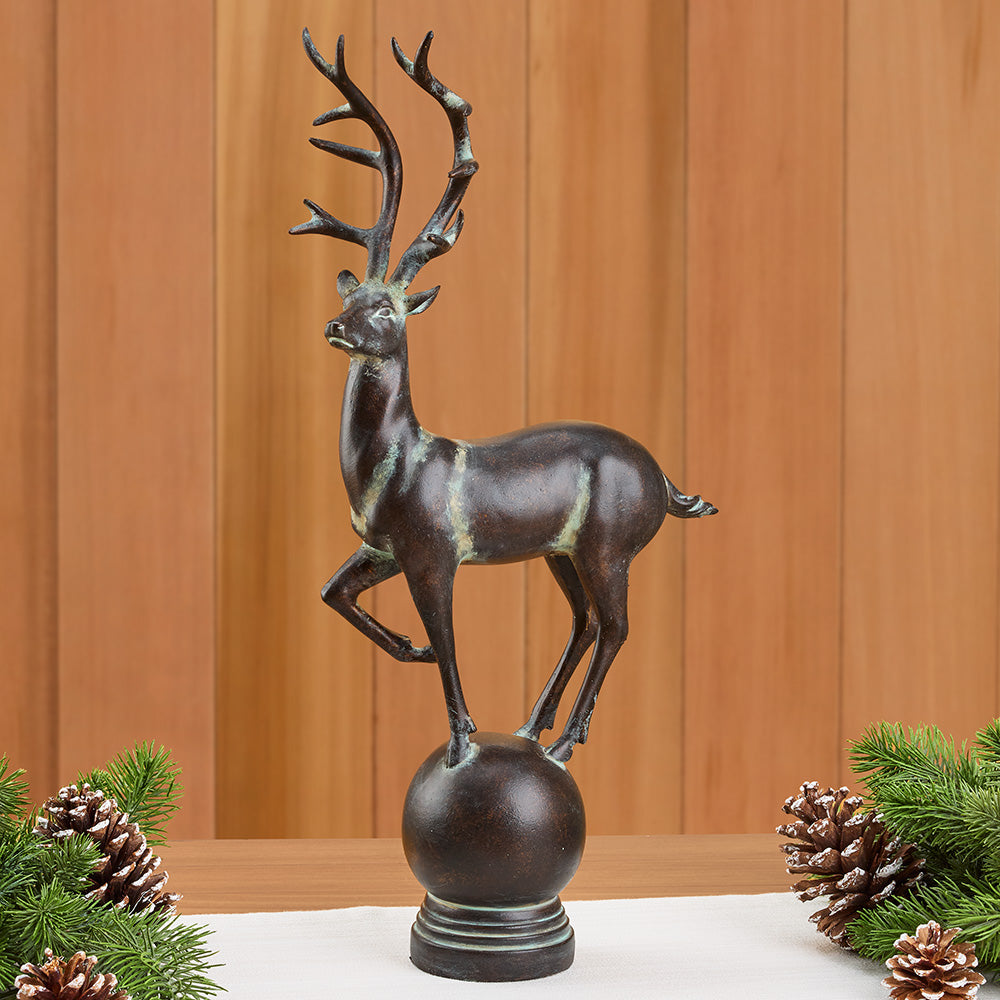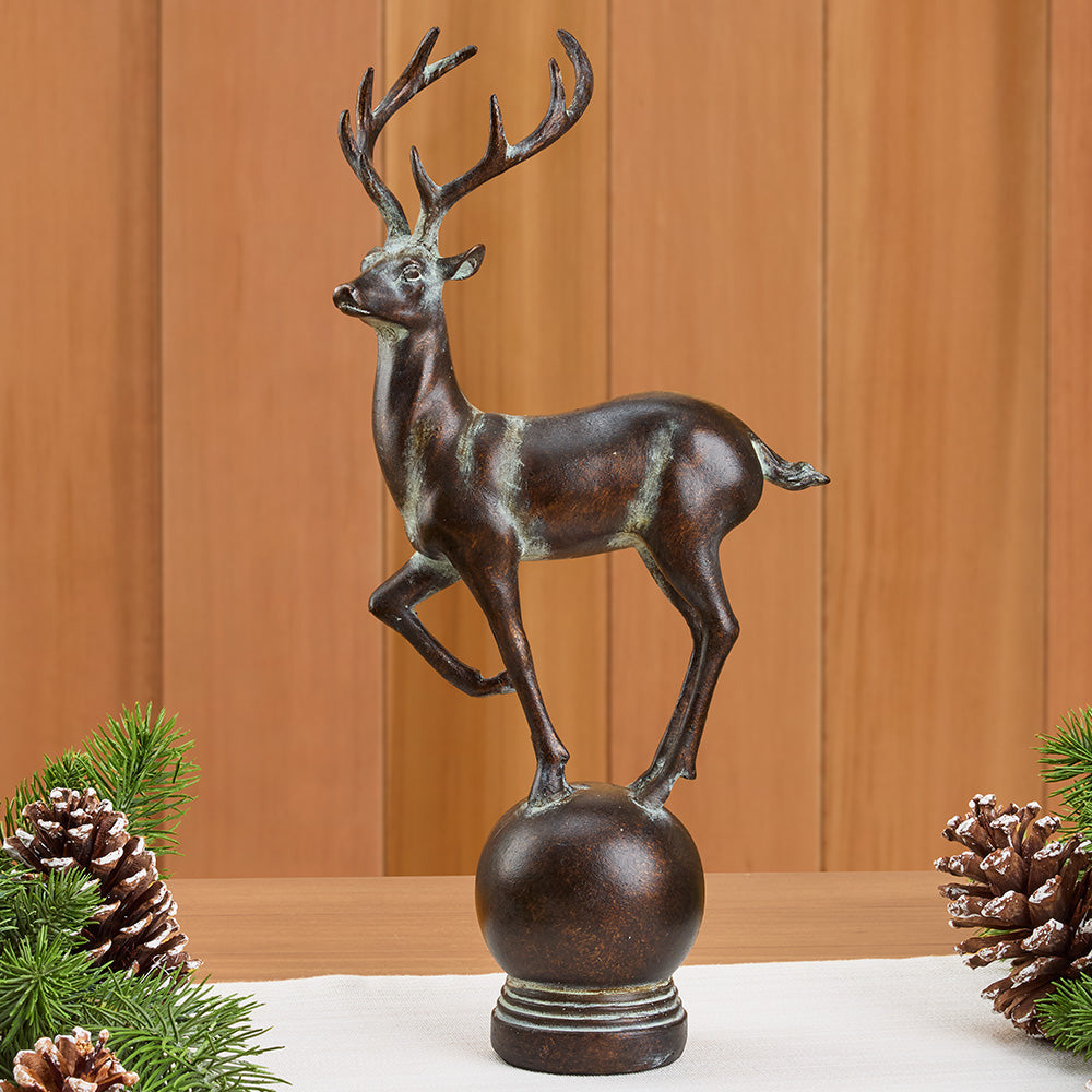 Add regal beauty and wintertime magic to your home. This Resin Reindeer is a rich bronze with antiquing that highlights its fine details. It's a majestic piece with rustic charm to celebrate the season.
