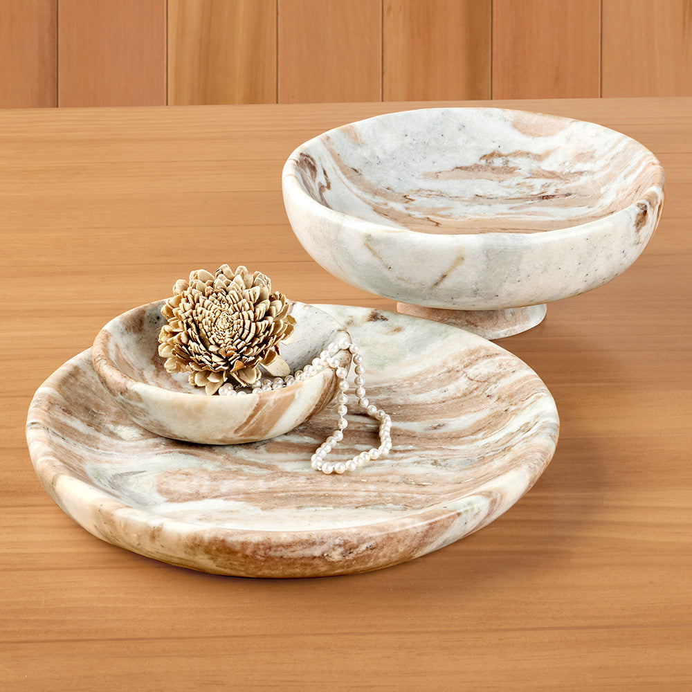 Bold brown veining makes each Josephine Marble Footed Bowl unique and incorporates subtle earth tones into your décor. With a matte finish and slim pedestal, it makes an excellent fruit bowl or table centerpiece that guests will admire.