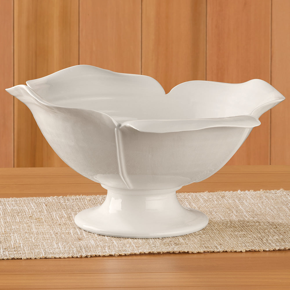 A dynamic display for your buffet or kitchen island, the Petalo Bowl is a lovely open design in soft white. Made by artisans using skills passed through generations, this beautiful botanical bowl is a true original.