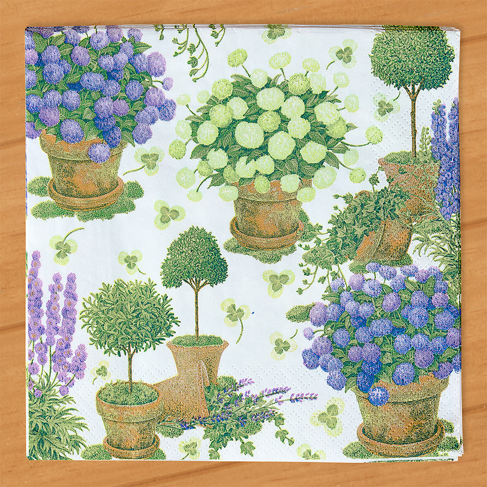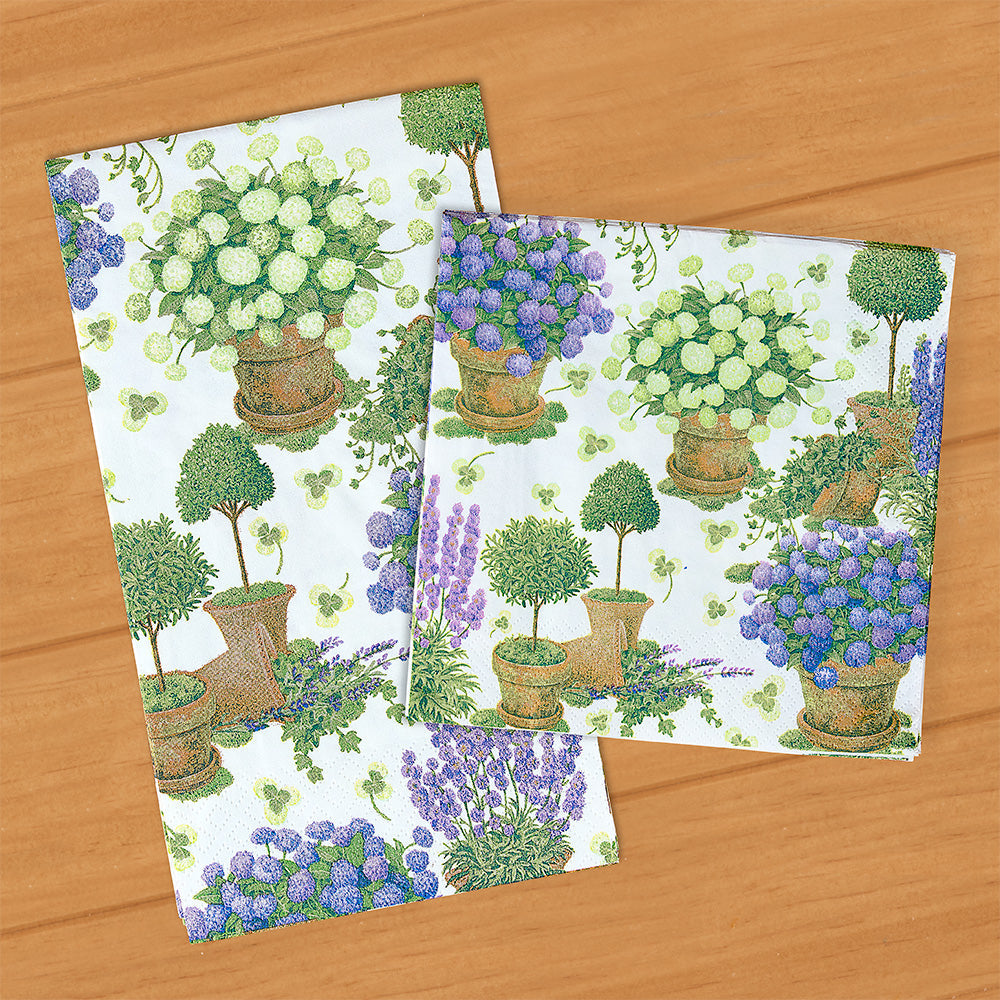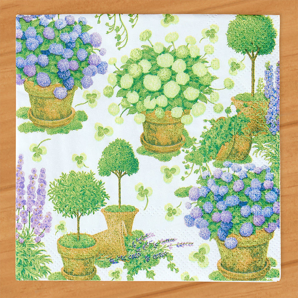 Caspari Paper Napkins, Potted Hydrangeas Garden Party