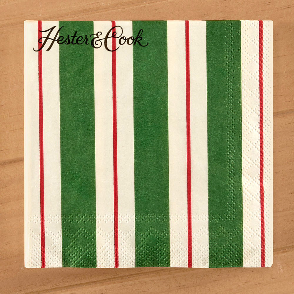 Hester & Cook Paper Napkins, Christmas Green & Red Awning Stripe