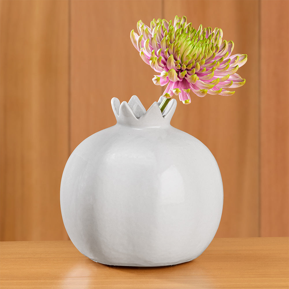 A pretty pomegranate look-alike, this vase adds dimension to your office or living room. Display a single flower stem or stagger a trio as a mantel display.