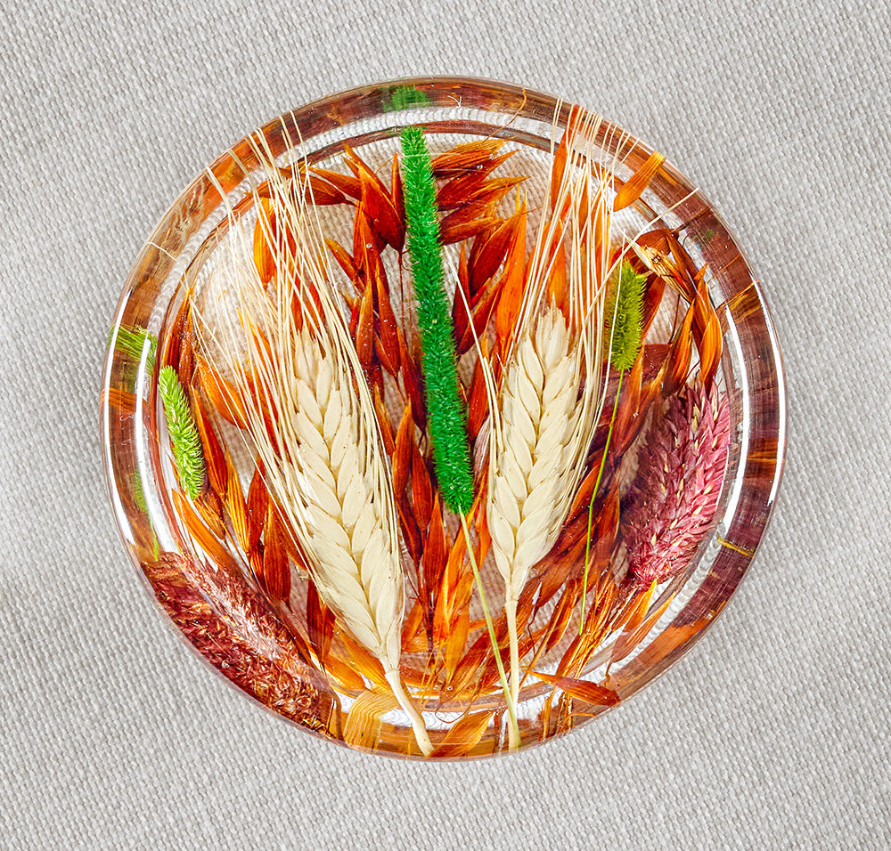 Catch condensation with this beautifully unique Bottle Coaster. Featuring natural plants sealed in clear resin, this one-of-a-kind coaster is both functional and fabulous. It's an excellent gift that works well as a soap dish or candle holder, too.