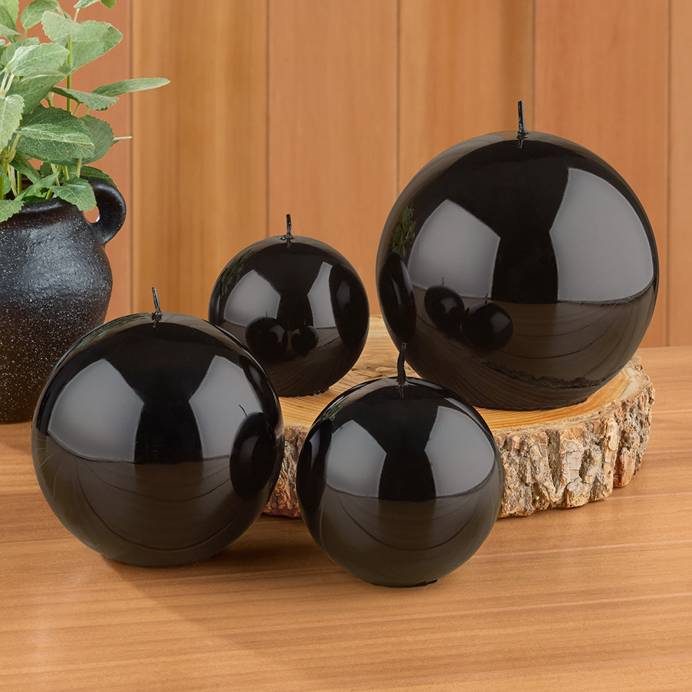 These elegant black candles create a cozy, sophisticated atmosphere. Mix sizes and colors for a signature seasonal display.