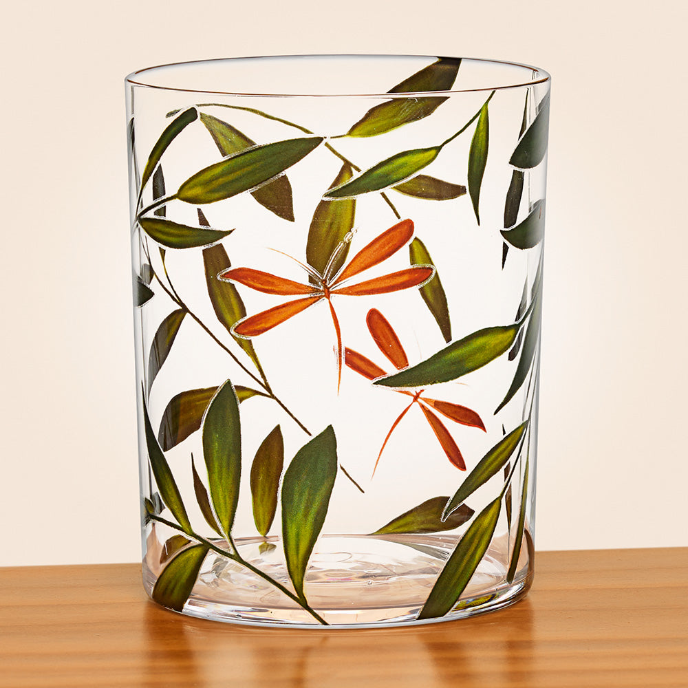 Hand-painted olive branches and dragonflies add botanical elegance to water, cocktails or iced tea. Refined and versatile, this tumbler complements any table setting. Present a set of six as a memorable housewarming gift.