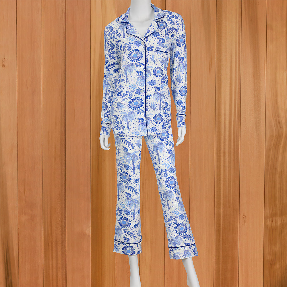 Indulge in the amazing softness of Pima cotton. Soft and breathable, these luxurious PJs will help you drift off to dream of beautiful blue palms and mischievous monkeys.