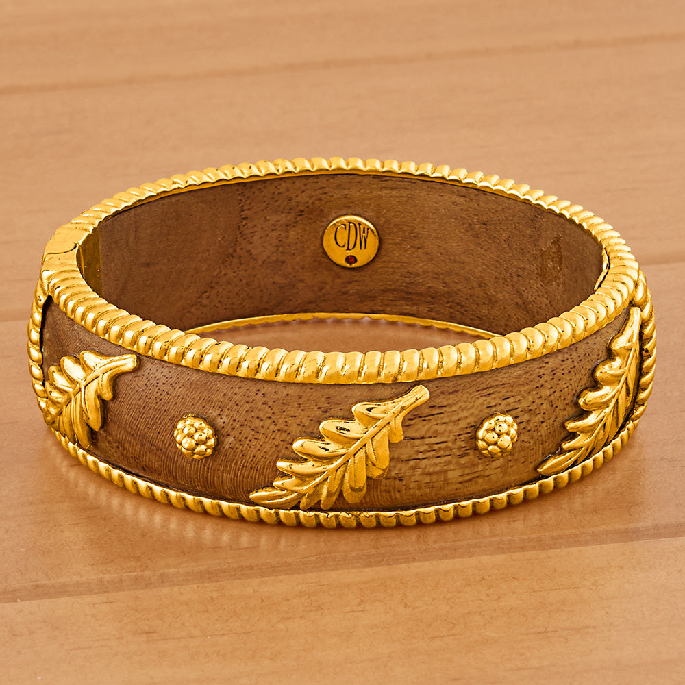 Capucine De Wulf Forest Walk Gold and Teak Oak Leaf Hinged Bangle Bracelet