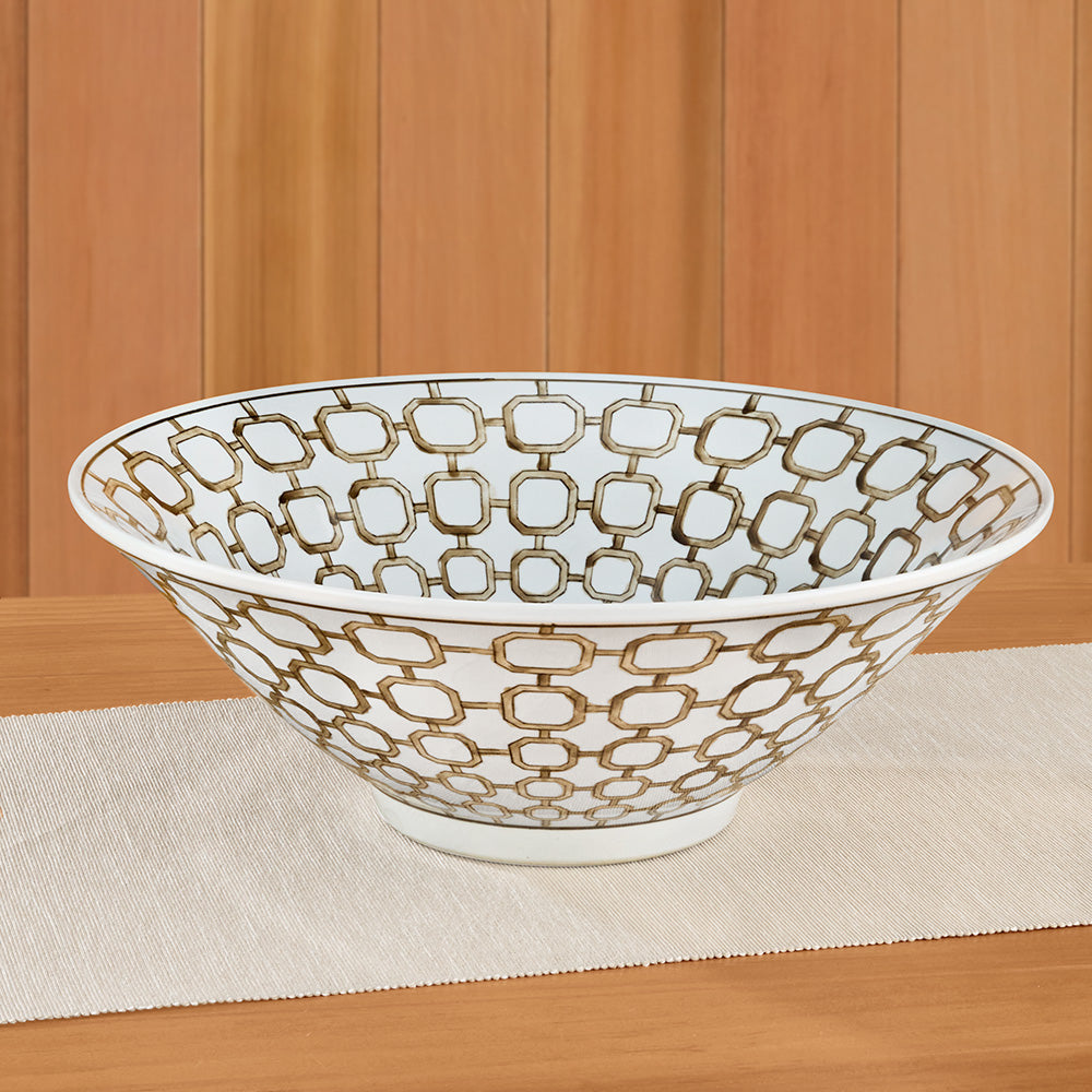 Smart and sophisticated, this Province Chinoiserie Bowl is timeless in taupe and white. The color complements any palette and is an inspired choice for an elegant home. Display it on your kitchen island, dining table or buffet.