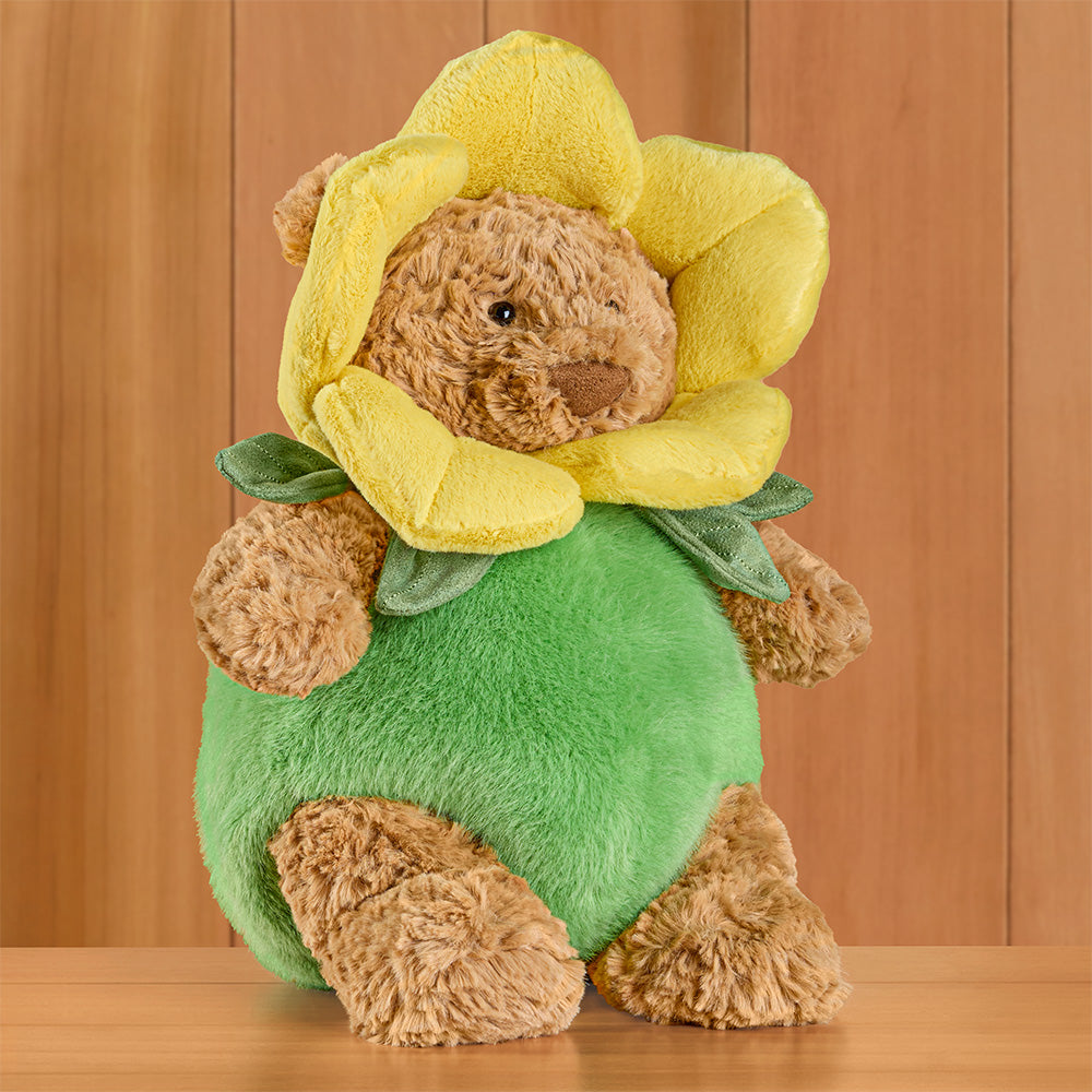 At first Bartholomew wasn't sold on his daffodil outfit, but it's growing on him! Blooming with sunny spirit and flower power, his cuddles will brighten your day.