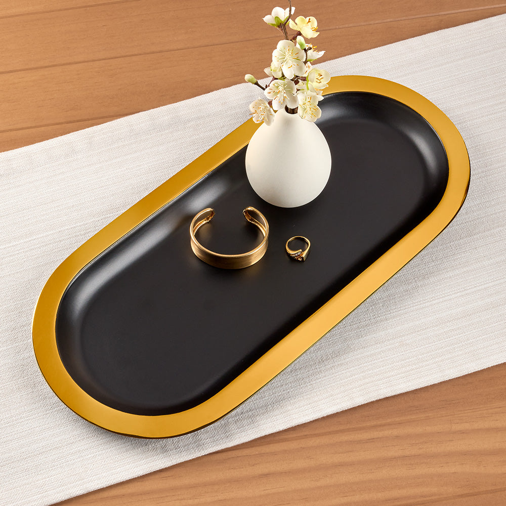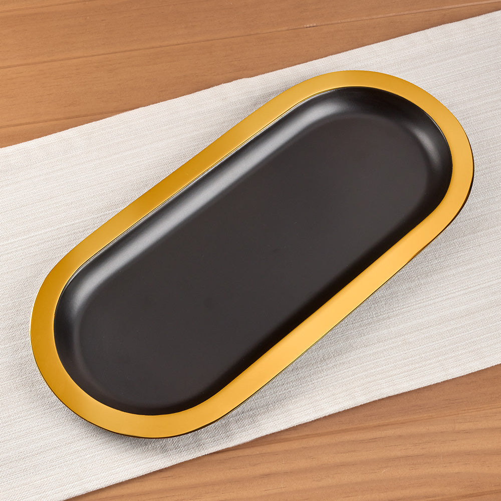 With its sophisticated matte black and polished gold finish, this Serving Tray has a striking modern aesthetic. A raised edge adds a practical element for serving drinks and snacks – it's an excellent accessory for any bar or kitchen.