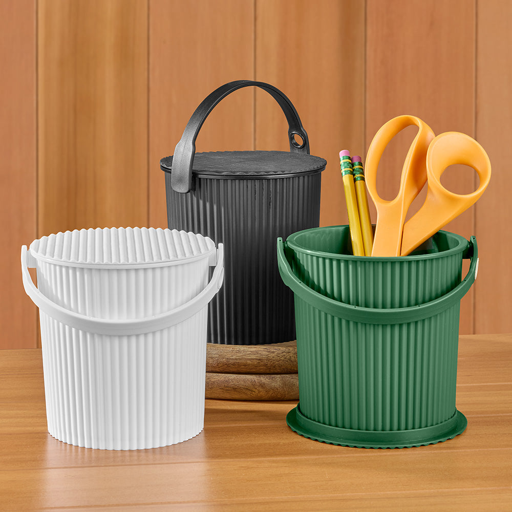 The at-home hero that does it all: storage, seating, waste bin and drink cooler. And with a hose-holding handle for hands-free filling, these buckets make excellent garden tools. They offer versatile utility, exceptional durability and elegant design.