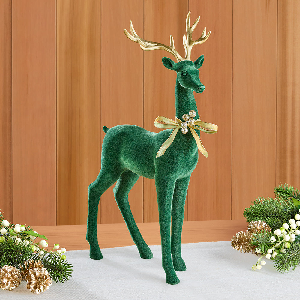 Enhance your holiday décor with an exquisite Velvet Reindeer Figurine. Whether displayed individually or as a pair, these graceful deer add an elegant flourish to any space.