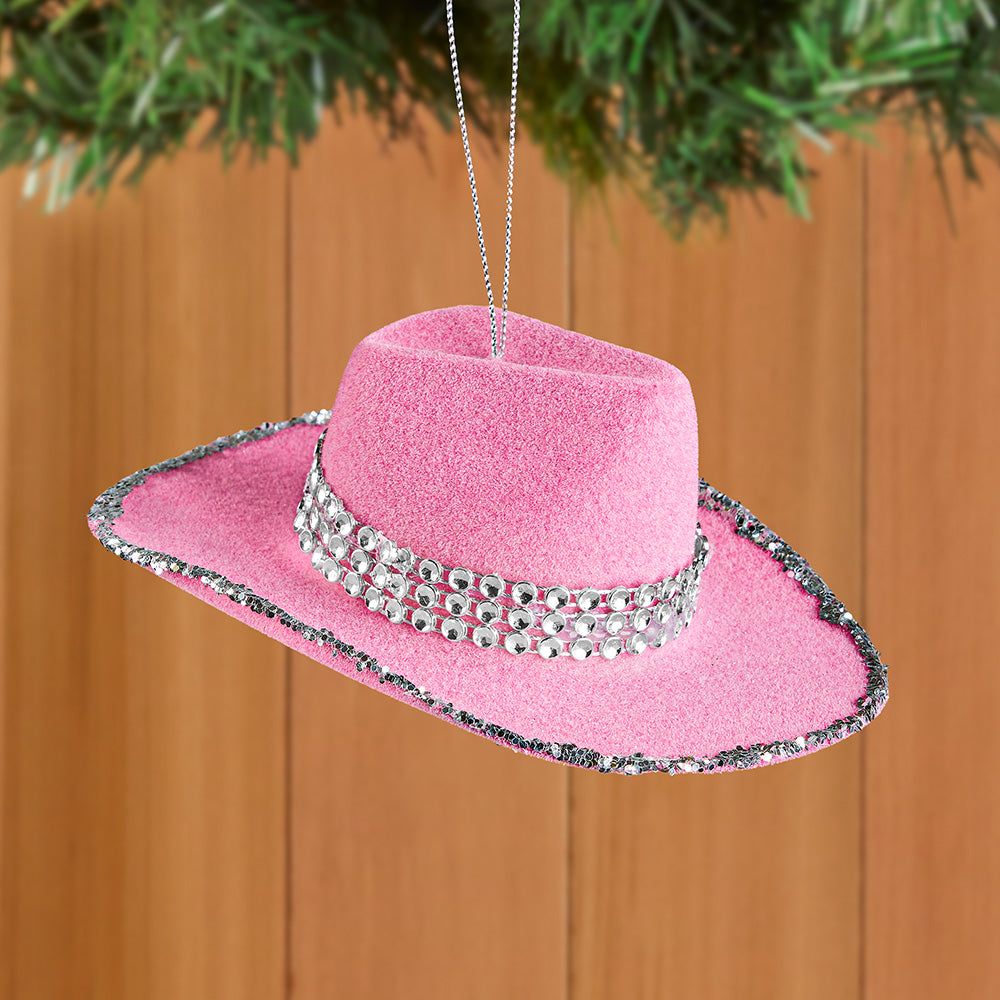 Add sass and sparkle to your Christmas decorations. This Cowgirl Hat Ornament combines western style with a whimsical spirit, embracing the Wild West's sense of adventure. It's an eye-catching accent for your tree or wreath and an excellent gift for Taylor Swift fans.