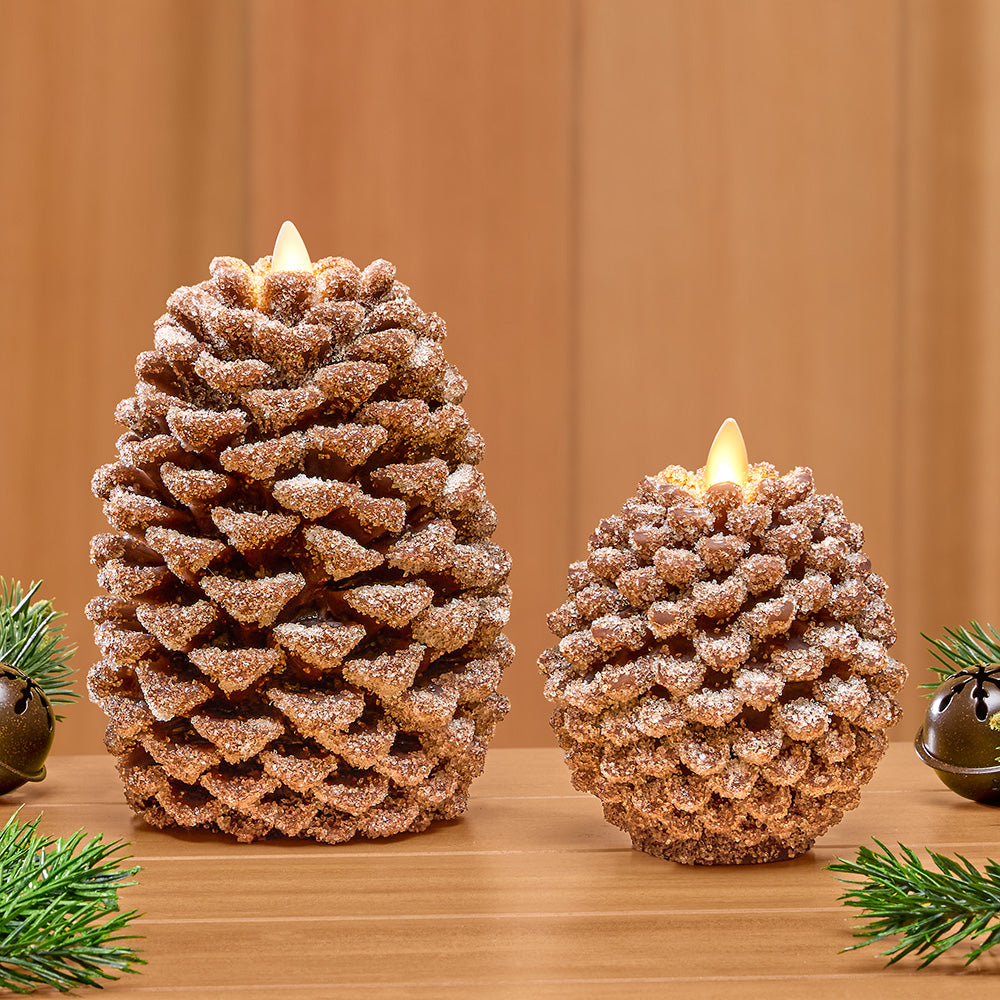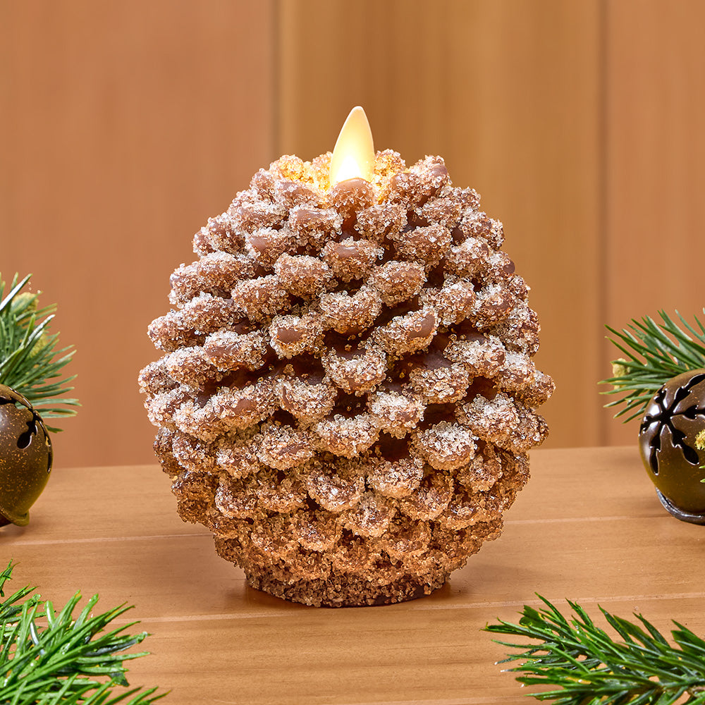 A lovely winter accent for mantels and coffee tables, this Pinecone Candle gives the look of a flickering flame but glows safely in holiday displays.