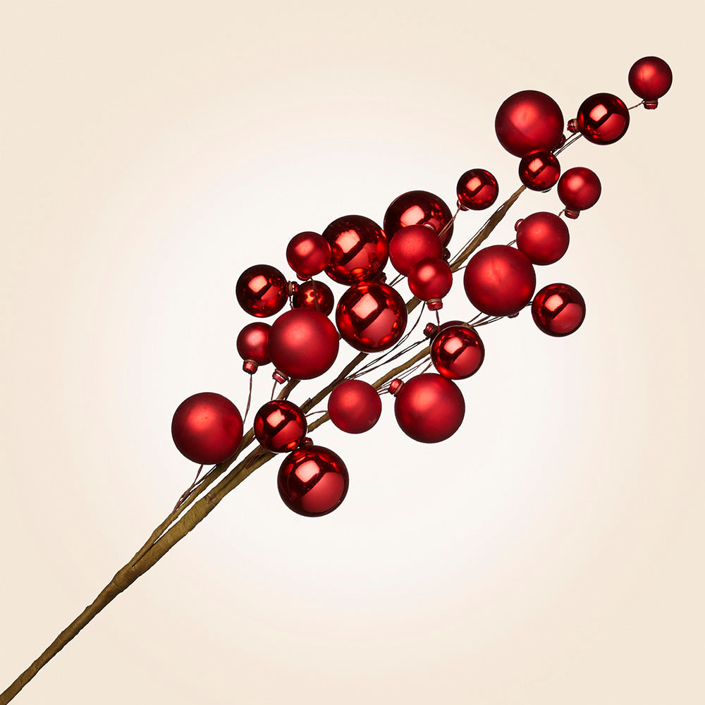 Put this rich red Ornament Spray in a vase on the mantel or tuck it into winter greenery. A festive pop of color, its mix of shiny and matte finishes gives this spray a classic style. Place it in a floral arrangement, garland or wreath to complete your Christmas look.