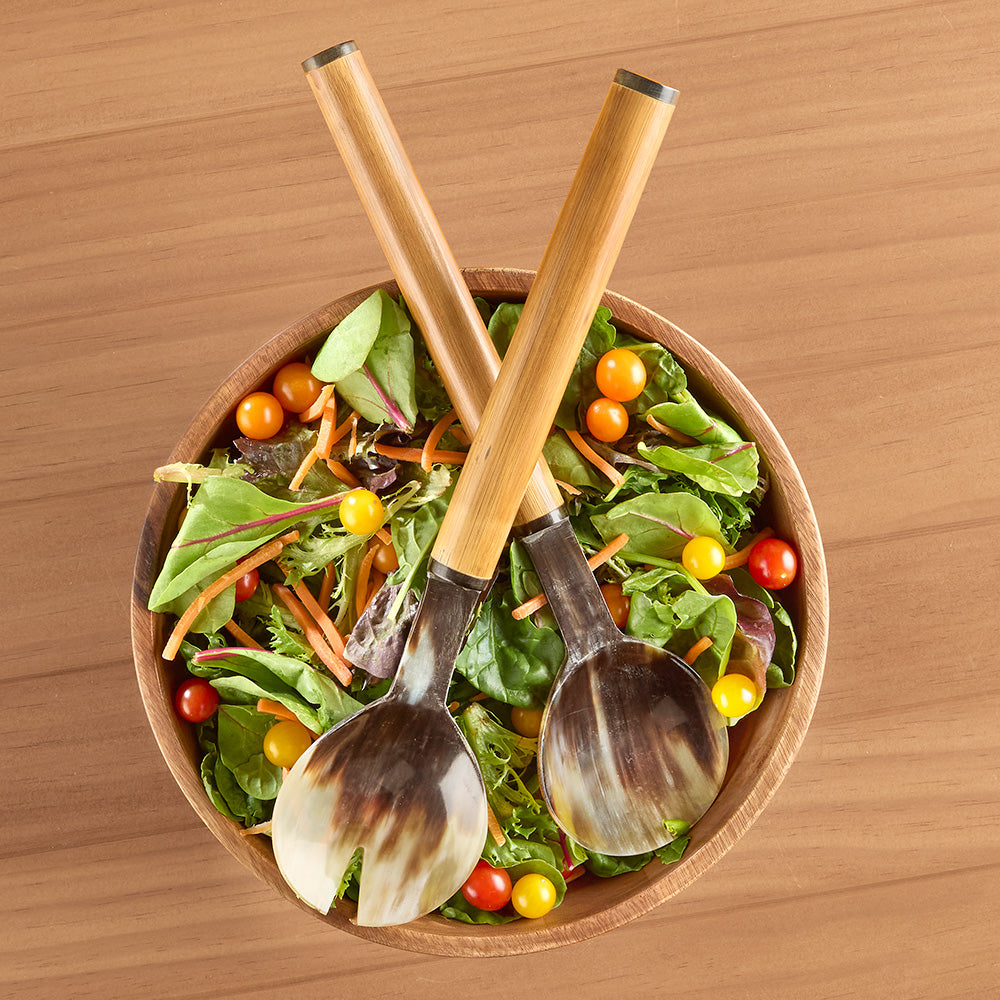 Perfect for salads and sides, the Selvo Servers bring chic natural beauty to any table. Give a set as a thoughtful housewarming or wedding gift. Since each utensil is handcrafted of natural materials, no two pieces are alike.