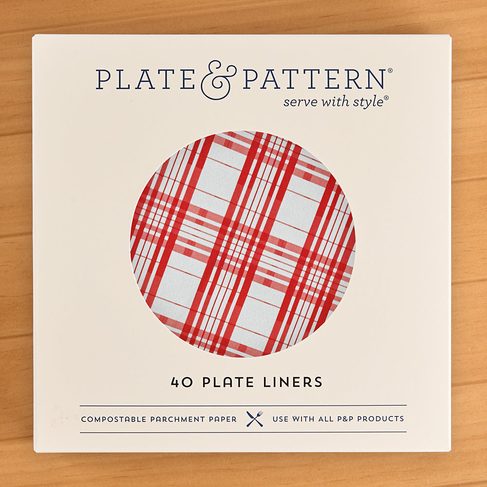 Like plate-sized cupcake wrappers, these liners have a fluted edge that fits the plate perfectly. Made of Plate & Pattern's heaviest parchment, liners hold up to use with a knife and greasy, saucy foods.