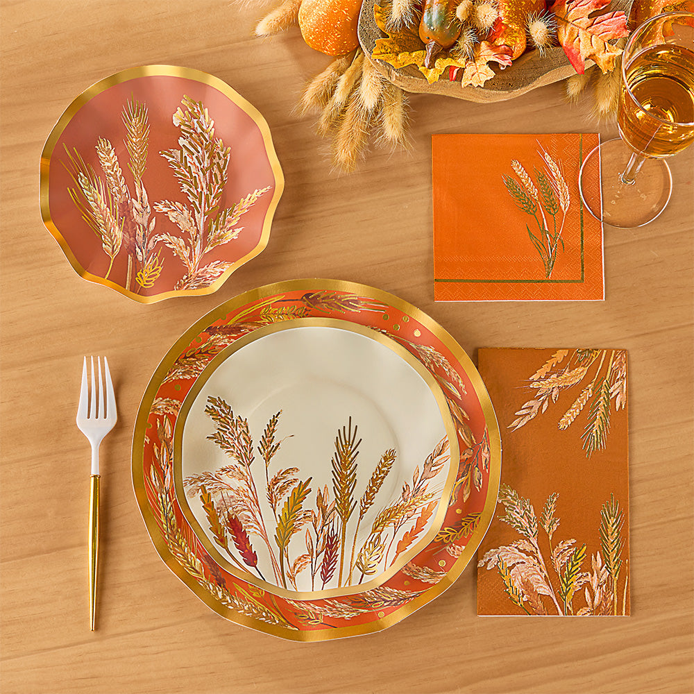 Sophistiplate Paper Plates and Napkins, Thanksgiving Harvest Wheat