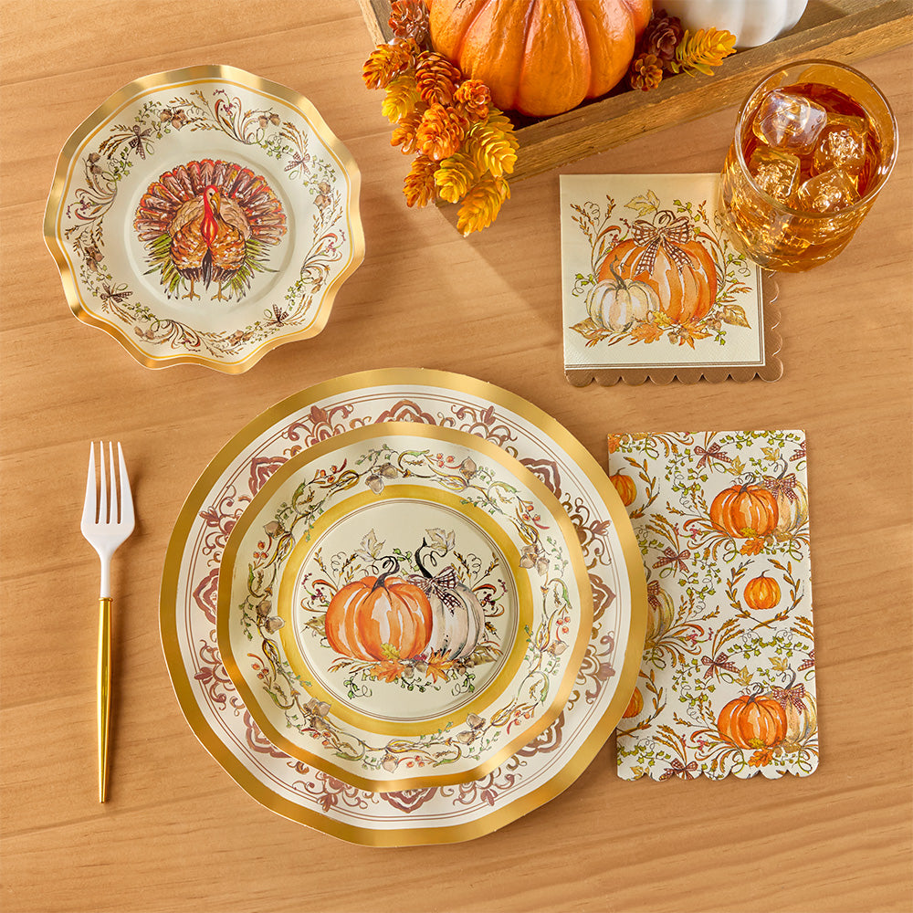 Sophistiplate Paper Plates and Napkins, Thanksgiving Turkey & Gourds