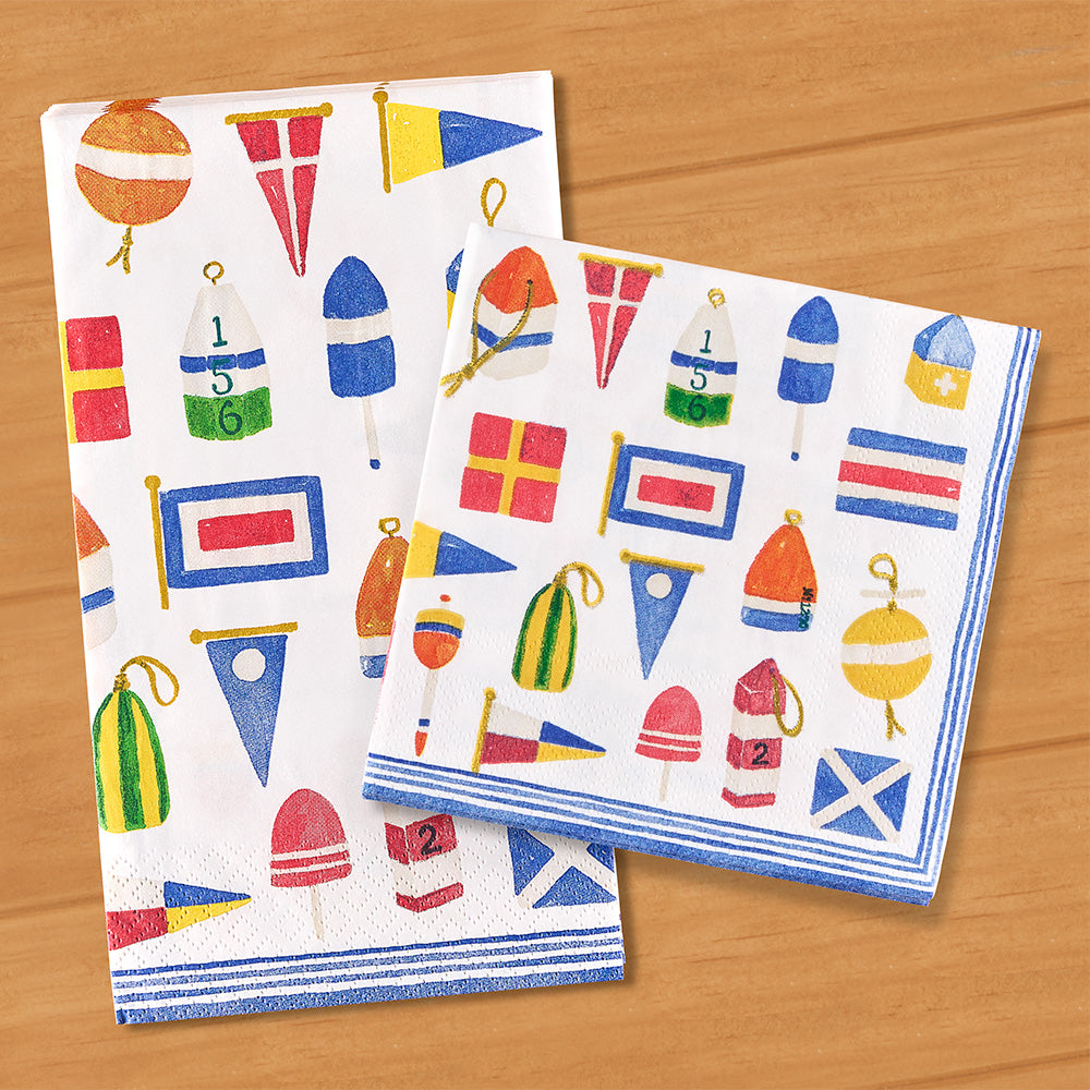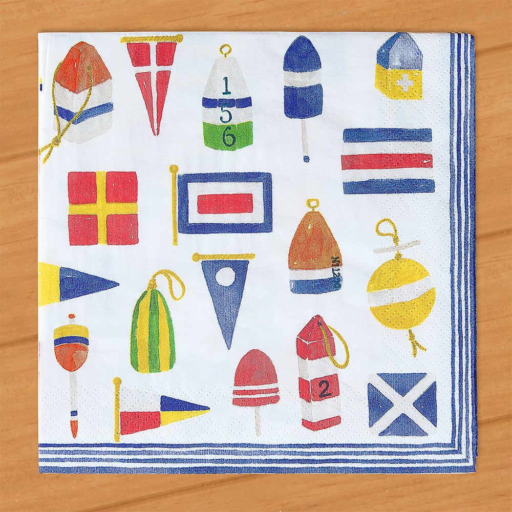Caspari Paper Napkins, Nautical Nantucket Flags and Buoys