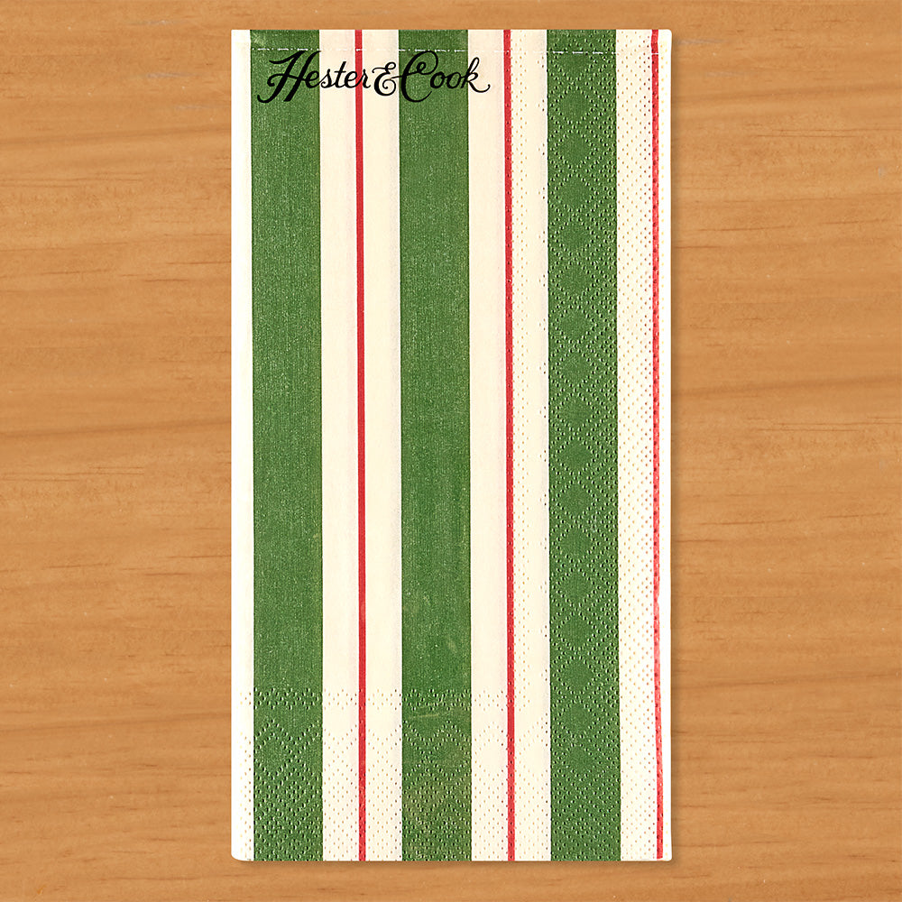 Hester & Cook Paper Napkins, Christmas Green & Red Awning Stripe